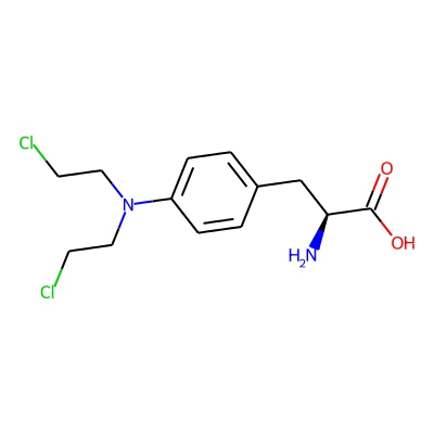 | CCSBASE_187A64A00A | MELPHALAN | [M+H]+ | 305.0818 | 168.7 | C1=CC(=CC=C1C[C@@H](C(=O)O)N)N(CCCl)CCCl | small molecule | 1 | 7 | TW | calibrated with polyalanine and drug standards | |
