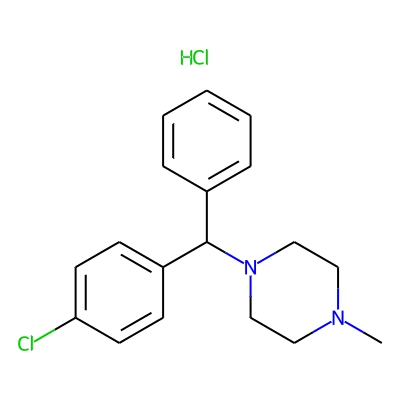 | CCSBASE_9E25559447 | CHLORCYCLIZINE HYDROCHLORIDE | [M+H]+ | 301.1466 | 173.4 | CN1CCN(CC1)C(C2=CC=CC=C2)C3=CC=C(C=C3)Cl.Cl | small molecule | 1 | 7 | TW | calibrated with polyalanine and drug standards | |