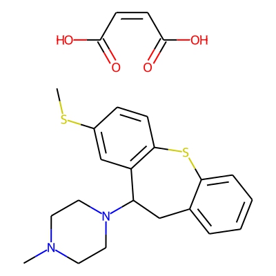 | CCSBASE_E003834CCC | METITEPINE MALEATE | [M+H]+ | 357.1454 | 184.4 | CN1CCN(CC1)C2CC3=CC=CC=C3SC4=C2C=C(C=C4)SC.C(=C\C(=O)O)\C(=O)O | small molecule | 1 | 7 | TW | calibrated with polyalanine and drug standards | |