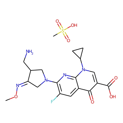 | CCSBASE_07AF25E6AF | GEMIFLOXACIN MESYLATE | [M+H]+ | 390.1577 | 189.6 | CO/N=C/1\CN(CC1CN)C2=C(C=C3C(=O)C(=CN(C3=N2)C4CC4)C(=O)O)F.CS(=O)(=O)O | small molecule | 1 | 7 | TW | calibrated with polyalanine and drug standards | |