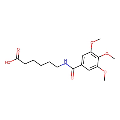 | CCSBASE_5BB75900EA | CAPOBENIC ACID | [M+H]+ | 326.1598 | 176.9 | COC1=CC(=CC(=C1OC)OC)C(=O)NCCCCCC(=O)O | small molecule | 1 | 7 | TW | calibrated with polyalanine and drug standards | |