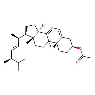 | CCSBASE_C2796BD3CC | ERGOSTEROL ACETATE | [M+H]+ | 467.3884 | 223.4 | C[C@H](/C=C/[C@H](C)C(C)C)[C@H]1CC[C@@H]2[C@@]1(CC[C@H]3C2=CC=C4[C@@]3(CC[C@@H](C4)OC(=O)C)C)C | small molecule | 1 | 7 | TW | calibrated with polyalanine and drug standards | |