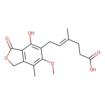 | CCSBASE_2430AE2D3B | MYCOPHENOLIC ACID | [M+H]+ | 321.1333 | 165.4 | CC1=C(C(=C(C2=C1COC2=O)O)C/C=C(\C)/CCC(=O)O)OC | small molecule | 1 | 7 | TW | calibrated with polyalanine and drug standards | |