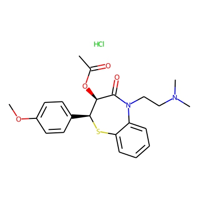 | CCSBASE_49909C70BE | DILTIAZEM HYDROCHLORIDE | [M+H]+ | 415.1686 | 196.1 | CC(=O)O[C@@H]1[C@@H](SC2=CC=CC=C2N(C1=O)CCN(C)C)C3=CC=C(C=C3)OC.Cl | small molecule | 1 | 7 | TW | calibrated with polyalanine and drug standards | |