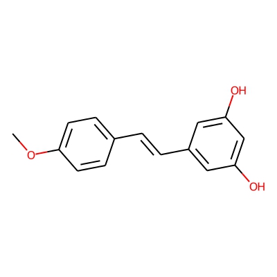 | CCSBASE_49D5E1C06F | RESVERATROL 4'-METHYL ETHER | [M+H]+ | 243.1016 | 157.3 | COC1=CC=C(C=C1)/C=C/C2=CC(=CC(=C2)O)O | small molecule | 1 | 7 | TW | calibrated with polyalanine and drug standards | |