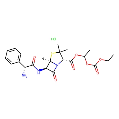 | CCSBASE_60BD4EFE03 | BACAMPICILLIN HYDROCHLORIDE | [M+H]+ | 466.1643 | 220.8 | CCOC(=O)OC(C)OC(=O)[C@H]1C(S[C@H]2N1C(=O)[C@H]2NC(=O)[C@@H](C3=CC=CC=C3)N)(C)C.Cl | small molecule | 1 | 7 | TW | calibrated with polyalanine and drug standards | |