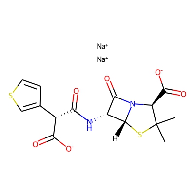 | CCSBASE_6F1325B6E8 | TICARCILLIN DISODIUM | [M+H]+ | 385.0523 | 190.4 | CC1([C@@H](N2[C@H](S1)[C@@H](C2=O)NC(=O)[C@@H](C3=CSC=C3)C(=O)[O-])C(=O)[O-])C.[Na+].[Na+] | small molecule | 1 | 7 | TW | calibrated with polyalanine and drug standards | |