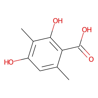 | CCSBASE_24D79459B8 | 3-METHYLORSELLINIC ACID | [M+H-H2O]+ | 165.0551 | 127.5 | CC1=CC(=C(C(=C1C(=O)O)O)C)O | small molecule | 1 | 7 | TW | calibrated with polyalanine and drug standards | |