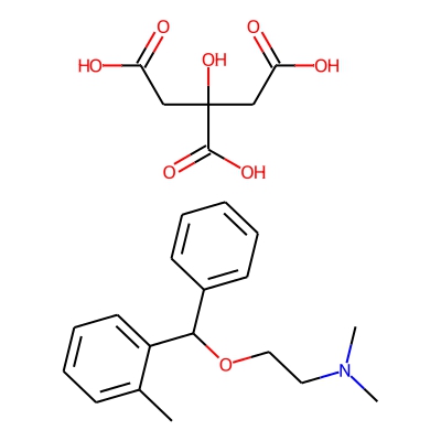 | CCSBASE_0D0A8254CD | ORPHENADRINE CITRATE | [M+H]+ | 270.1853 | 166.1 | CC1=CC=CC=C1C(C2=CC=CC=C2)OCCN(C)C.C(C(=O)O)C(CC(=O)O)(C(=O)O)O | small molecule | 1 | 7 | TW | calibrated with polyalanine and drug standards | |
