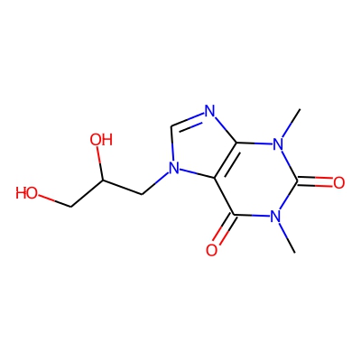 | CCSBASE_A121214D85 | DYPHYLLINE | [M+H]+ | 255.1088 | 152.6 | CN1C2=C(C(=O)N(C1=O)C)N(C=N2)CC(CO)O | small molecule | 1 | 7 | TW | calibrated with polyalanine and drug standards | |