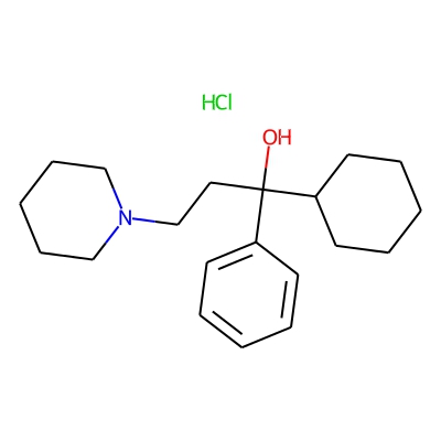 | CCSBASE_D52A32E266 | TRIHEXYPHENIDYL HYDROCHLORIDE | [M+H]+ | 302.2479 | 174.9 | C1CCC(CC1)C(CCN2CCCCC2)(C3=CC=CC=C3)O.Cl | small molecule | 1 | 7 | TW | calibrated with polyalanine and drug standards | |