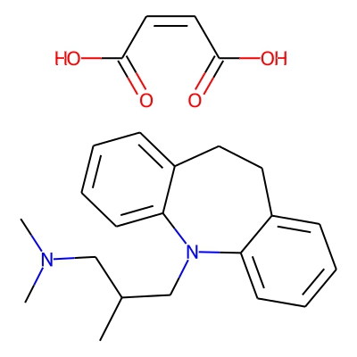 | CCSBASE_636E22E74E | TRIMIPRAMINE MALEATE | [M+H]+ | 295.2169 | 169.9 | CC(CN1C2=CC=CC=C2CCC3=CC=CC=C31)CN(C)C.C(=C\C(=O)O)\C(=O)O | small molecule | 1 | 7 | TW | calibrated with polyalanine and drug standards | |
