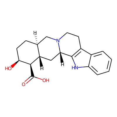 | CCSBASE_3843A73606 | YOHIMBIC ACID | [M+H]+ | 341.186 | 181.7 | C1C[C@@H]([C@@H]([C@@H]2[C@@H]1CN3CCC4=C([C@@H]3C2)NC5=CC=CC=C45)C(=O)O)O | small molecule | 1 | 7 | TW | calibrated with polyalanine and drug standards | |