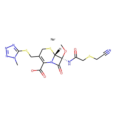 | CCSBASE_9FE7550218 | CEFMETAZOLE SODIUM | [M+Na]+ | 494.0345 | 193.6 | CN1C(=NN=N1)SCC2=C(N3[C@@H]([C@@](C3=O)(NC(=O)CSCC#N)OC)SC2)C(=O)[O-].[Na+] | small molecule | 1 | 7 | TW | calibrated with polyalanine and drug standards | |