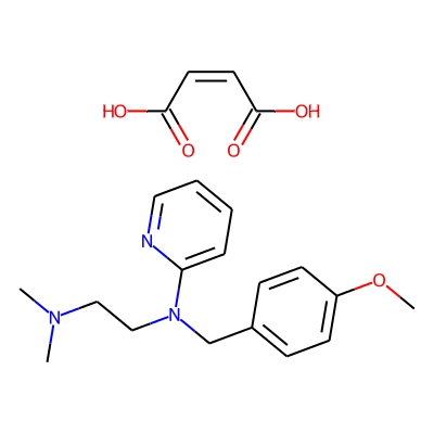 | CCSBASE_6B713E7121 | PYRILAMINE MALEATE | [M+H]+ | 286.1914 | 168.1 | CN(C)CCN(CC1=CC=C(C=C1)OC)C2=CC=CC=N2.C(=C\C(=O)O)\C(=O)O | small molecule | 1 | 7 | TW | calibrated with polyalanine and drug standards | |