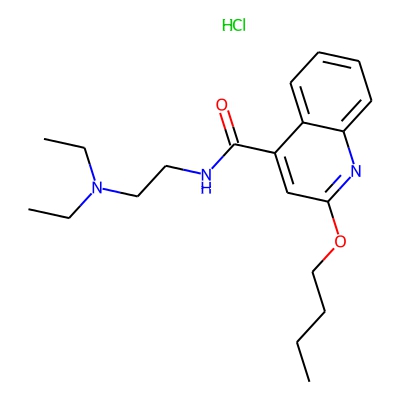 | CCSBASE_07FC7E933A | DIBUCAINE HYDROCHLORIDE | [M+H]+ | 344.2333 | 195.5 | CCCCOC1=NC2=CC=CC=C2C(=C1)C(=O)NCCN(CC)CC.Cl | small molecule | 1 | 7 | TW | calibrated with polyalanine and drug standards | |