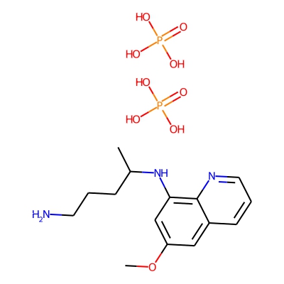 | CCSBASE_18E6C7C520 | PRIMAQUINE DIPHOSPHATE | [M+H]+ | 260.1758 | 161.3 | CC(CCCN)NC1=C2C(=CC(=C1)OC)C=CC=N2.OP(=O)(O)O.OP(=O)(O)O | small molecule | 1 | 7 | TW | calibrated with polyalanine and drug standards |