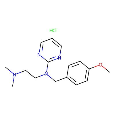 | CCSBASE_B407838751 | THONZYLAMINE HYDROCHLORIDE | [M+H]+ | 287.1867 | 167.3 | CN(C)CCN(CC1=CC=C(C=C1)OC)C2=NC=CC=N2.Cl | small molecule | 1 | 7 | TW | calibrated with polyalanine and drug standards | |