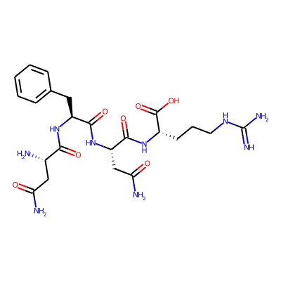 | CCSBASE_CF8CD2D964 | NFNR | [M+H]+ | 550.27 | 225.0 | N[C@@H](CC(=O)N)C(=O)N[C@@H](CC1=CC=CC=C1)C(=O)N[C@@H](CC(=O)N)C(=O)N[C@@H](CCCNC(=N)N)C(=O)O | peptide | 1 | 1 | DT | stepped-field | |