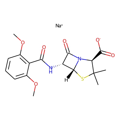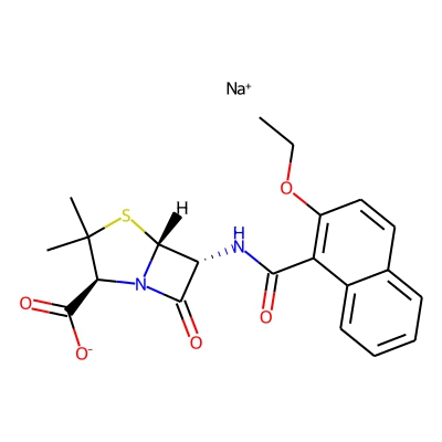 | CCSBASE_1F406F8889 | NAFCILLIN SODIUM | [M+H]+ | 415.1322 | 191.5 | CCOC1=C(C2=CC=CC=C2C=C1)C(=O)N[C@H]3[C@@H]4N(C3=O)[C@H](C(S4)(C)C)C(=O)[O-].[Na+] | small molecule | 1 | 7 | TW | calibrated with polyalanine and drug standards | |