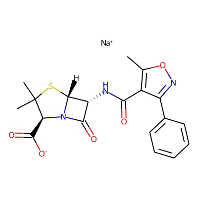| CCSBASE_E8D82553A0 | OXACILLIN SODIUM | [M+H]+ | 402.1118 | 189.0 | CC1=C(C(=NO1)C2=CC=CC=C2)C(=O)N[C@H]3[C@@H]4N(C3=O)[C@H](C(S4)(C)C)C(=O)[O-].[Na+] | small molecule | 1 | 7 | TW | calibrated with polyalanine and drug standards | |