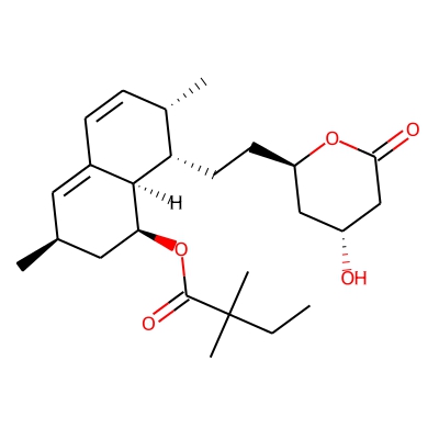 | CCSBASE_7FB5A0CAAD | SIMVASTATIN | [M+H-H2O]+ | 401.2691 | 199.6 | CCC(C)(C)C(=O)O[C@H]1C[C@H](C=C2[C@H]1[C@H]([C@H](C=C2)C)CC[C@@H]3C[C@H](CC(=O)O3)O)C | small molecule | 1 | 7 | TW | calibrated with polyalanine and drug standards | |