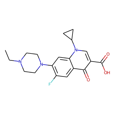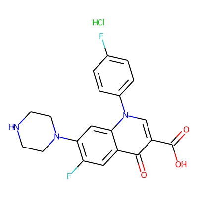 | CCSBASE_9CACE688D4 | SARAFLOXACIN HYDROCHLORIDE | [M+H]+ | 386.1311 | 199.3 | C1CN(CCN1)C2=C(C=C3C(=C2)N(C=C(C3=O)C(=O)O)C4=CC=C(C=C4)F)F.Cl | small molecule | 1 | 7 | TW | calibrated with polyalanine and drug standards | |
