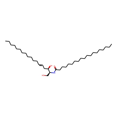 | CCSBASE_7720AB4486 | Cer(38:1) | [M+H]+ | 594.5825 | 267.3 | [C@](CO)([H])(NC(CCCCCCCCCCCCCCCCCCC)=O)[C@]([H])(O)CC=CCCCCCCCCCCCC | lipid | 1 | 9 | DT | single field, calibrated with Agilent tune mix (Agilent) | |