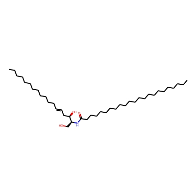 | CCSBASE_F0CDB62534 | Cer(41:1) | [M+H]+ | 636.6294 | 275.6 | [C@](CO)([H])(NC(CCCCCCCCCCCCCCCCCCCCCC)=O)[C@]([H])(O)CC=CCCCCCCCCCCCC | lipid | 1 | 9 | DT | single field, calibrated with Agilent tune mix (Agilent) | |