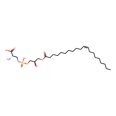 | CCSBASE_26A985D3E1 | LPS(20:1) | [M+H]+ | 552.3301 | 231.8 | C(O)(=O)[C@@]([H])(N)COP(OC[C@]([H])(O)COC(CCCCCCCCC/C=C\CCCCCCCC)=O)(=O)O | lipid | 1 | 9 | DT | single field, calibrated with Agilent tune mix (Agilent) |