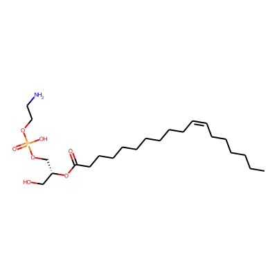 | CCSBASE_2F819E68C8 | LPE(18:1) | [M+Na]+ | 502.291 | 222.1 | C(OP(OCCN)(O)=O)[C@]([H])(OC(=O)CCCCCCCCC/C=C\CCCCCC)CO | lipid | 1 | 9 | DT | single field, calibrated with Agilent tune mix (Agilent) | |