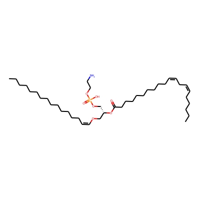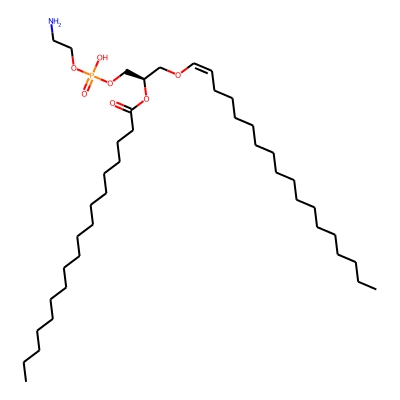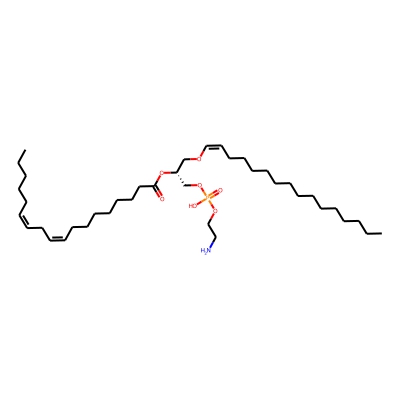 | CCSBASE_FB20B4CD48 | PE(p38:4) | [M+H]+ | 752.5594 | 281.5 | [C@](COP(=O)(O)OCCN)([H])(OC(CCCCC/C=C\C/C=C\C/C=C\C/C=C\CCCCC)=O)CO/C=C\CCCCCCCCCCCCCC | lipid | 1 | 9 | DT | single field, calibrated with Agilent tune mix (Agilent) | |