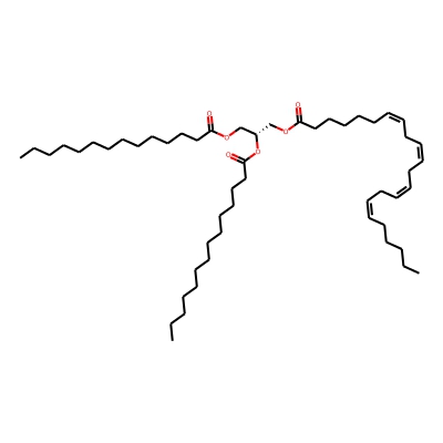 | CCSBASE_6C4B3291B9 | TG(52:4) | [M+NH4]+ | 872.7707 | 317.6 | C(OC(=O)CCC/C=C\C/C=C\C/C=C\C/C=C\CCCCC)[C@]([H])(OC(CCCCCCCCCCCCCCCCC)=O)COC(CCCCCCCCCCCCC)=O | lipid | 1 | 9 | DT | single field, calibrated with Agilent tune mix (Agilent) |