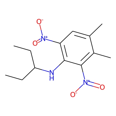 | CCSBASE_200F3DF8E2 | Pendimethalin | [M+H]+ | 282.1448254 | 162.6026989 | CCC(CC)NC1=C(C=C(C(=C1[N+](=O)[O-])C)C)[N+](=O)[O-] | small molecule | 1 | 10 | DT | stepped-field | |