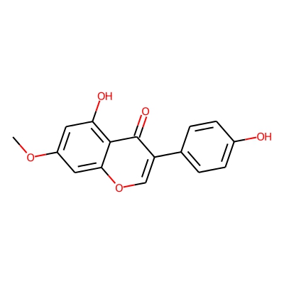 | CCSBASE_20EC6A9B55 | Prunetin | [M+H]+ | 285.0757462 | 166.2555625 | COC1=CC(=C2C(=C1)OC=C(C2=O)C3=CC=C(C=C3)O)O | small molecule | 1 | 10 | DT | stepped-field | |