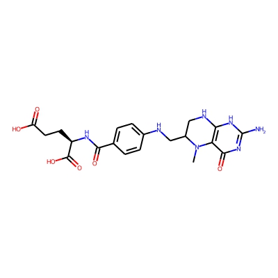 | CCSBASE_67B4B34D31 | 5-Methyltetrahydrofolate | [M+H]+ | 460.1937846 | 196.9865342 | CN1C(CNC2=C1C(=O)N=C(N2)N)CNC3=CC=C(C=C3)C(=O)N[C@H](CCC(=O)O)C(=O)O | small molecule | 1 | 10 | DT | stepped-field |