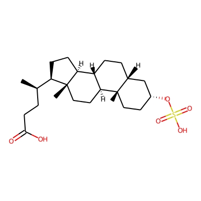 | CCSBASE_86AF26A8CA | Sulfolithocholic acid | [M-H]- | 455.2467 | 212.2 | C[C@H](CCC(=O)O)[C@H]1CC[C@@H]2[C@@]1(CC[C@H]3[C@H]2CC[C@H]4[C@@]3(CC[C@H](C4)OS(=O)(=O)O)C)C | small molecule | 1 | 10 | DT | stepped-field | |