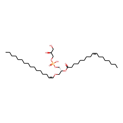 | CCSBASE_6B5784AF63 | PG(p31:2) | [M-H]- | 687.461 | 256.8 | CCCCCCCCCCCCC\C=C/OC[C@H](CO[P](O)(=O)OC[C@@H](O)CO)OC(=O)CCCCCCC\C=C/C/C=C\CCC | lipid | 1 | 11 | TW | calibrated with phosphatidylcholines (ESI+) and phosphatidylethanolamines (ESI-) | |
