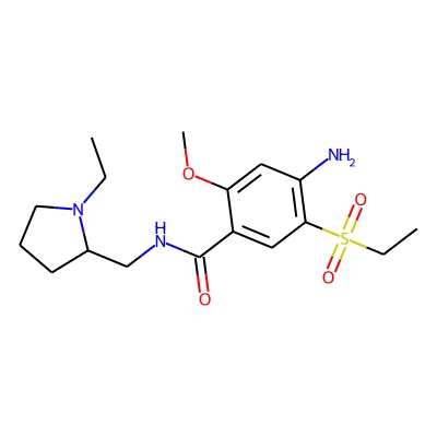 | CCSBASE_70EE960EFB | Amisulpride | [M+H]+ | 370.4873 | 193.1 | CCN1CCCC1CNC(C2=CC(S(=O)(CC)=O)=C(C=C2OC)N)=O | small molecule | 1 | 13 | TW | Major Mix IMS/Tof Calibration Kit (Waters) | |