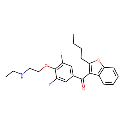 | CCSBASE_7DF705C2C7 | Amiodarone | [M+H]+ | 646.32724 | 226.4 | CCCCC1=C(C2=CC=CC=C2O1)C(C3=CC(I)=C(C(I)=C3)OCCN(CC)CC)=O | small molecule | 1 | 13 | TW | Major Mix IMS/Tof Calibration Kit (Waters) | |