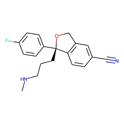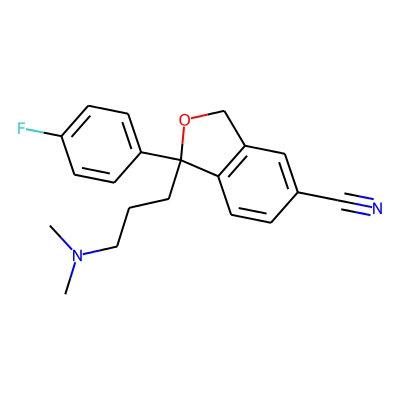 | CCSBASE_AC7A46D998 | Citalopram | [M+H]+ | 325.4067032 | 180.1 | FC(C=C1)=CC=C1C2(CCCN(C)C)OCC3=C2C=CC(C#N)=C3 | small molecule | 1 | 13 | TW | Major Mix IMS/Tof Calibration Kit (Waters) | |