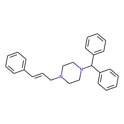 | CCSBASE_ABE0598AD3 | Cinnarizine | [M+H]+ | 369.5313 | 206.2 | N1(C(C2=CC=CC=C2)C3=CC=CC=C3)CCN(C/C=C/C4=CC=CC=C4)CC1 | small molecule | 1 | 13 | TW | Major Mix IMS/Tof Calibration Kit (Waters) | |