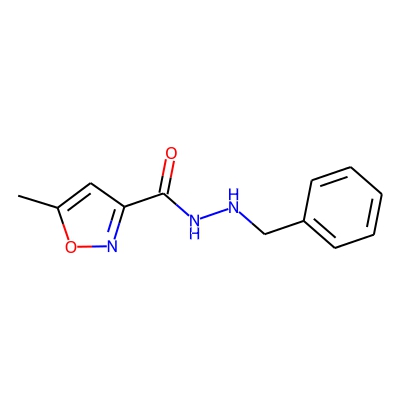 | CCSBASE_768764FE3B | Isocarboxazid | [M+H]+ | 232.26229999999998 | 152.1 | O=C(C1=NOC(C)=C1)NNCC2=CC=CC=C2 | small molecule | 1 | 13 | TW | Major Mix IMS/Tof Calibration Kit (Waters) |