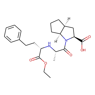 | CCSBASE_492F102DB3 | Ramipril | [M+H]+ | 417.52529999999996 | 197.0 | CCOC([C@@H](N[C@H](C(N1[C@H]2CCC[C@H]2C[C@H]1C(O)=O)=O)C)CCC3=CC=CC=C3)=O | small molecule | 1 | 13 | TW | Major Mix IMS/Tof Calibration Kit (Waters) | |