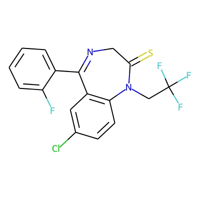 | CCSBASE_C46D6A3E23 | Quazepam | [M+H]+ | 387.79991279999996 | 174.9 | ClC1=CC(C(C2=CC=CC=C2F)=NCC3=S)=C(C=C1)N3CC(F)(F)F | small molecule | 1 | 13 | TW | Major Mix IMS/Tof Calibration Kit (Waters) | |