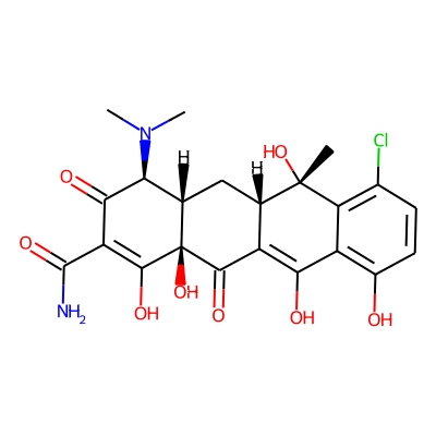 | CCSBASE_758A892020 | CHLORTETRACYCLINE | [M+H]+ | 479.1216 | 199.0 | C[C@@]1([C@H]2C[C@H]3[C@@H](C(=O)C(=C([C@]3(C(=O)C2=C(C4=C(C=CC(=C41)Cl)O)O)O)O)C(=O)N)N(C)C)O | small molecule | 1 | 15 | TW | calibrated with Waters Major Mix | |