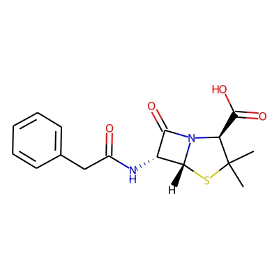 | CCSBASE_8A0D2F3AB4 | PENICILLIN G | [M+H]+ | 335.106 | 176.6 | CC1([C@@H](N2[C@H](S1)[C@@H](C2=O)NC(=O)CC3=CC=CC=C3)C(=O)O)C | small molecule | 1 | 15 | TW | calibrated with Waters Major Mix | |
