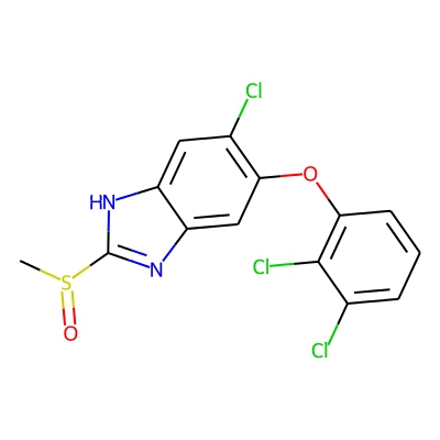| CCSBASE_6CF242C623 | TRICLABENDAZOLE SULFOXIDE | [M+H]+ | 374.9523 | 186.1 | CS(=O)C1=NC2=CC(=C(C=C2N1)Cl)OC3=C(C(=CC=C3)Cl)Cl | small molecule | 1 | 15 | TW | calibrated with Waters Major Mix | |