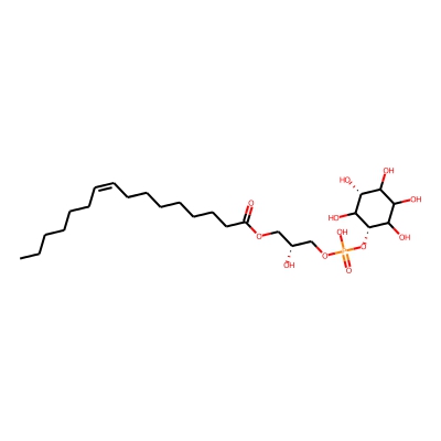 | CCSBASE_32C07B599B | LPI(18:1) | [M-H]- | 597.3044199999999 | 233.4 | [C@]([H])(O)(COP(=O)(O)O[C@@H]1C(O)[C@H](O)C(O)C(O)C1O)COC(CCCCCCC/C=C\CCCCCCCC)=O | lipid | 1 | 3 | DT | stepped-field |