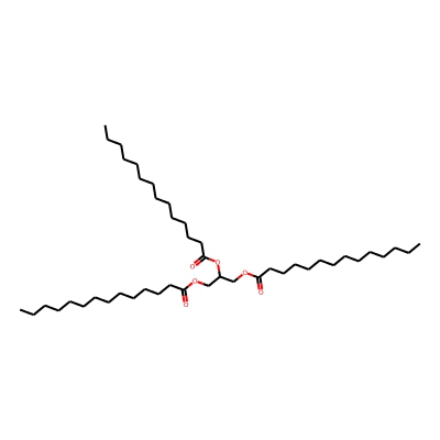 | CCSBASE_227FB13101 | GLYCERYL TRIMYRISTATE | [M+Na]+ | 745.6322 | 291.4 | CCCCCCCCCCCCCC(=O)OCC(COC(=O)CCCCCCCCCCCCC)OC(=O)CCCCCCCCCCCCC | small molecule | 1 | 16 | DT | single field, calibrated with ESI Low Concentration Tuning Mix (Agilent) | |
